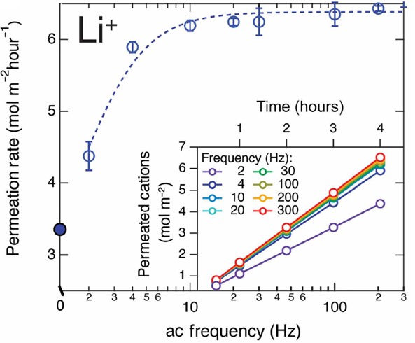 Figure 4. Increase in lithium ion transport rate as a function of AC gate voltage frequency (Pendse et al., 2025).